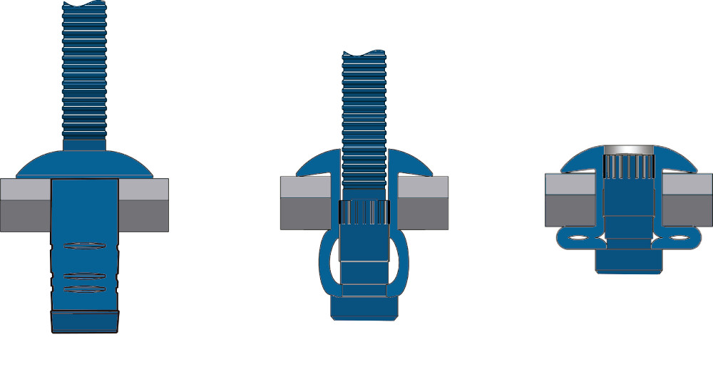 Bralo’s G-BRA rivet is designed for the most demanding applications, where higher clamping force and high tensile and shear strength are required. Excellent load and clamping force distribution due to the wide expansion of the blind side.